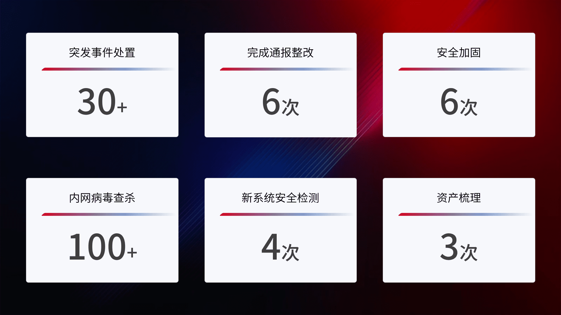 安全水平提升与事件响应:派驻经验丰富的安全工程师,,,,提升医院网络安全防护的整体水平;建立突发网络安全事件的处置流程,,,,提高响应速度和处置能力。。。。